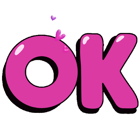 a pink ok sign with a flower and hearts on it