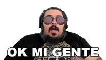 Agbin3r, a man with a beard, sunglasses, and headphones, says 'OK MY PEOPLE' with expressive hand gestures.