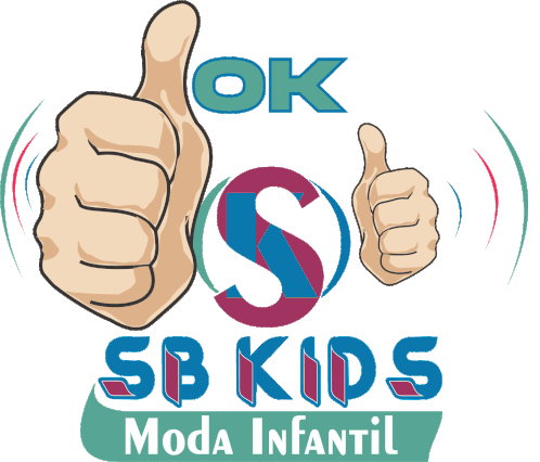 A vibrant sticker featuring two thumbs up, the 'OK' sign, and the 'SB Kids Moda Infantil' brand logo, perfect for children's fashion.