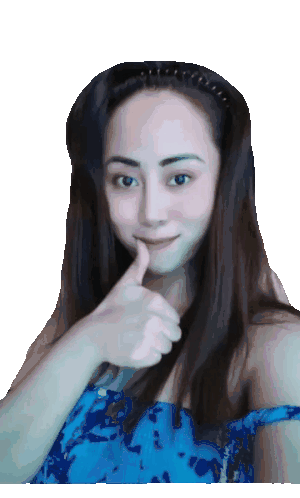 A beautiful woman with long dark hair smiles and gives a thumbs-up gesture, indicating approval or agreement.
