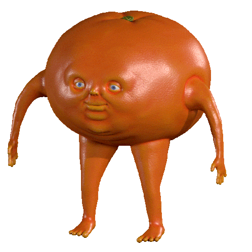 A strange 3D orange creature with arms and legs winks and makes an 'OK' hand gesture.