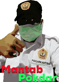 A man in a POKDARKAMTIBMAS uniform, mask, and cap gives a thumbs up, with text "Mantab Pokdar".