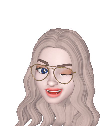 a cartoon girl with blonde hair and glasses is smiling with one eye closed