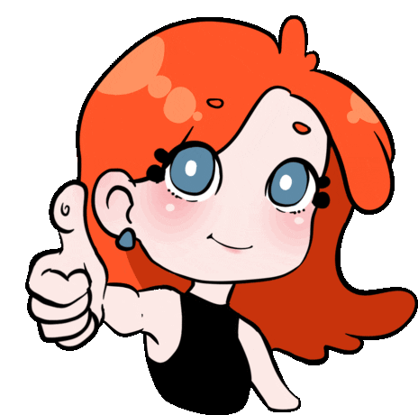 A cheerful cartoon girl with red hair winks and gives a thumbs up, showing approval and positivity.
