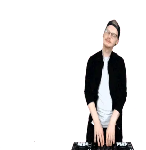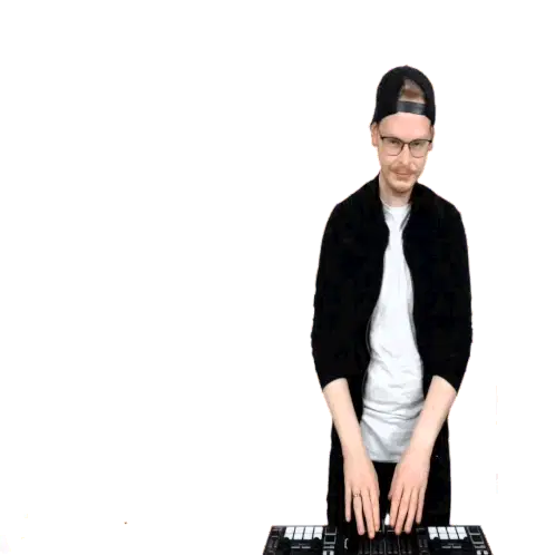 A cute white rabbit with pink headphones makes an 'OK' gesture, enjoying music and dancing.