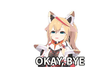 An anime girl character, possibly Nano or Nanoade, waves goodbye with the text "Okay Bye" appearing below her.