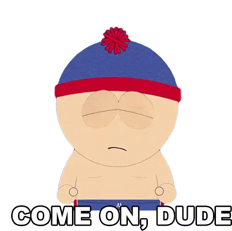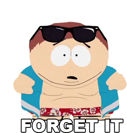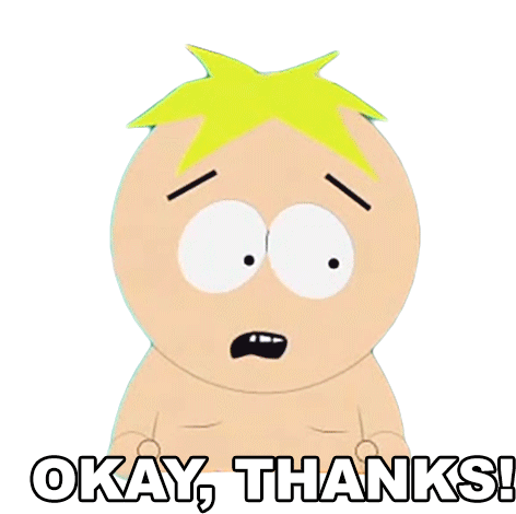 Butters Stotch from South Park, shirtless, says "Okay, Thanks!" with a slightly worried expression.