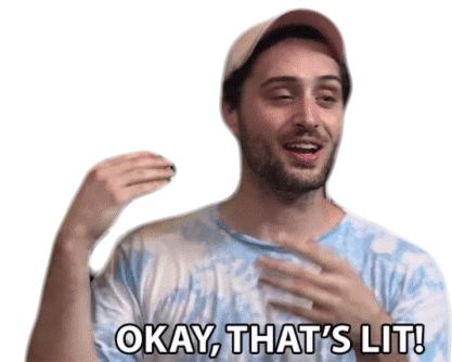 Blake Webber claps his hands and exclaims 'Okay, That's Lit!' with an excited, happy expression.