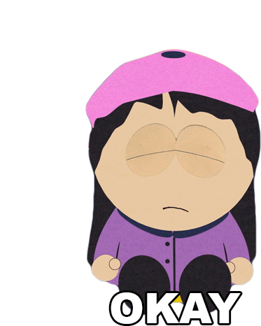 Wendy Testaburger from South Park says "Okay" with a slightly worried expression, wearing her signature pink beret.