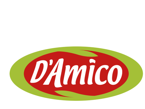 Animated sticker featuring the D'Amico brand logo, an oval with a red center, green border, and white text.