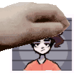A charming pixel art animation featuring a hand proudly holding up a framed picture of Oliver Fields, who smiles brightly.