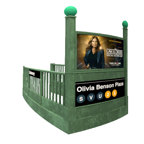 Olivia Benson Plaza subway sign featuring a Law & Order: Special Victims Unit poster with Olivia Benson.