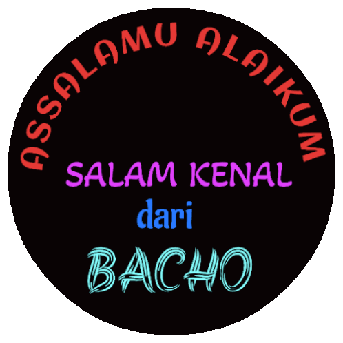 A friendly greeting from Bacho, saying 'Assalamu Alaikum, nice to meet you' on a black circular sticker.