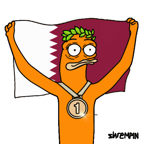 a cartoon character holding a flag with a medal around his neck with the number 3 on it