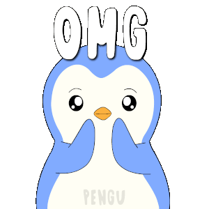 A cute cartoon penguin reacts with wide eyes and open mouth, expressing shock and surprise as 'OMG' appears above its head.