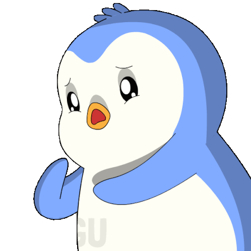 a blue and white penguin is behind a glass with the word penguin on it