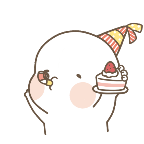 Ompangie character celebrates with a party hat, cake, and party blower, saying "Congratulations!".