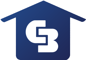 Animated sticker featuring the 'Move With Marshall' brand's blue house logo with 'CB' initials, representing real estate.