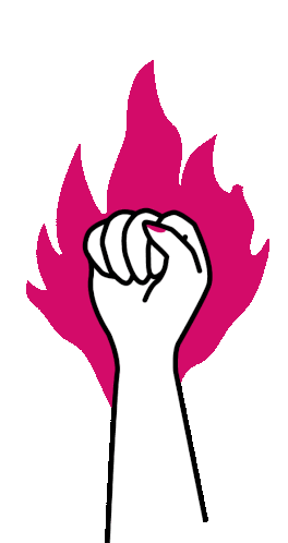 A powerful animated sticker featuring a white fist with a black outline, engulfed by vibrant pink flickering flames, symbolizing strength and fight.
