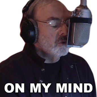 Neil Diamond, wearing headphones, sings passionately into a microphone with the caption 'On My Mind' displayed.
