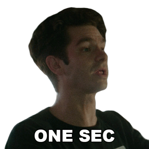Andrew Garfield as Jon Larson says 'One Sec' from Tick, Tick... Boom!, signaling a brief pause or wait.