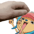 A hand gently pets Tony Tony Chopper's head, a beloved character from One Piece, often associated with Luffy, showing affection.