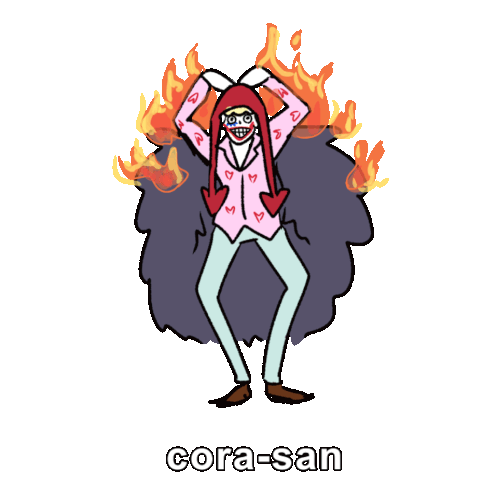 Corazon (Donquixote Rosinante) from One Piece, depicted with flames emanating from his chest, in a dynamic animated sticker.
