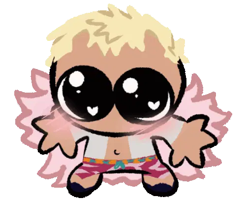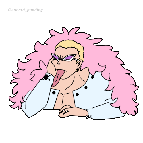 Donquixote Doflamingo from One Piece, a man with pink hair and purple glasses, in an animated sticker.
