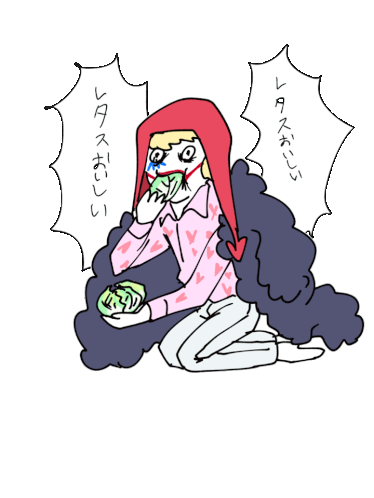 Corazon from One Piece kneeling, holding a lettuce leaf, in a poignant animated moment.