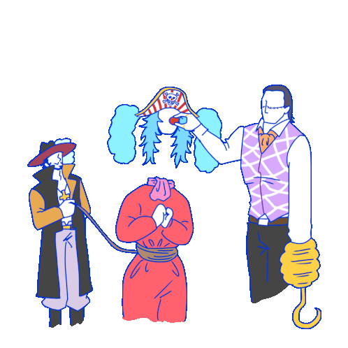 a cartoon of a man holding a hook and a woman tied up