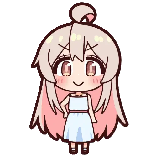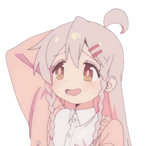 a girl with white hair and orange eyes is wearing a pink sweater and a white shirt .