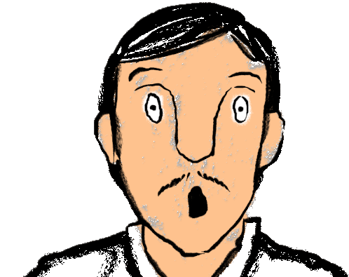 A drawing of a man reacting with surprise, then covering his face in a classic facepalm gesture.