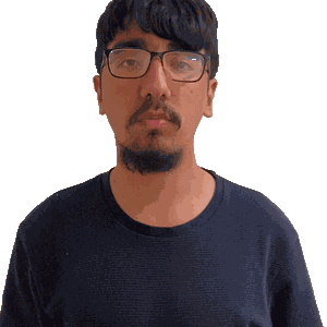 a man with glasses and a beard looks at the camera