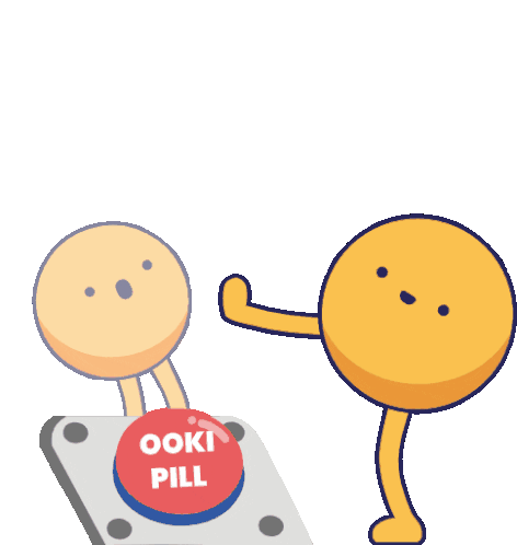 A cartoon character pushes a red button labeled "OOKI PILL", related to cryptocurrency and the Ooki brand.