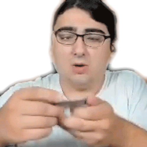 Noel reacts with an open mouth, exclaiming "OOOH!" while holding a small object and extending his hand.