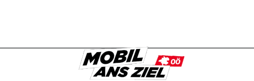 Animated sticker for OÖVV (Upper Austria Public Transport) featuring a train and bus, promoting 'Mobil ans Ziel'.