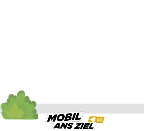 An animated yellow bicycle with the 'Mobil ans Ziel' slogan and OÖVV logo, promoting mobility in Upper Austria.