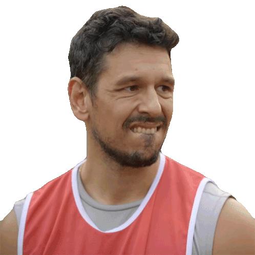 João Vicente De Castro bites his lip with a surprised or disappointed expression, wearing a red vest.