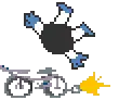 Opa-Opa, the iconic winged spaceship from Sega's Fantasy Zone, flies through a vibrant pixel art arcade world.