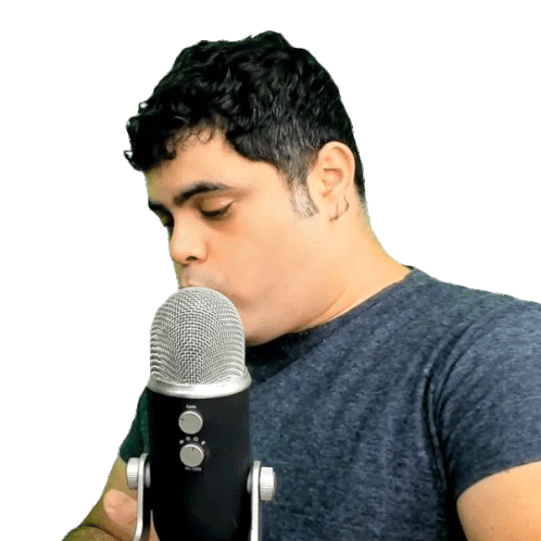 Rafael Procopio, known from Matematica Rio, looks up surprised from his microphone. A fun sticker for a pleasant surprise.