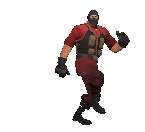 A Mercenary Of character from Open Fortress performs a lively dance, moving its arms and legs in a rhythmic, animated sequence.