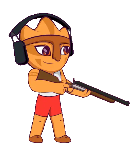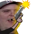 A pixelated circle animates to resemble a mouth opening and closing, with an implied aiming action.