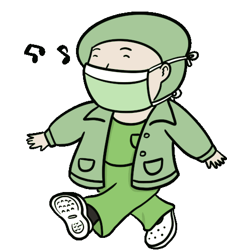 A cheerful cartoon nurse in green scrubs and a mask sings happily, with musical notes floating around. Perfect for healthcare appreciation.