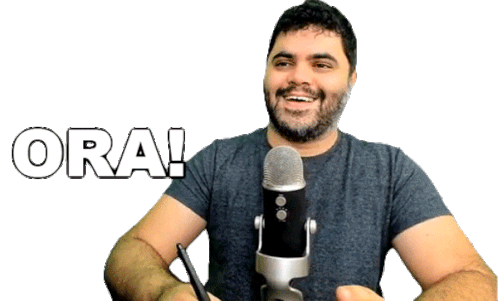 Rafael Procopio, the "Matematica Rio" professor, enthusiastically says "ORA!" while gesturing in front of a microphone.