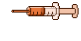 An animated pixel art sticker of a syringe filled with orange liquid, with a drop falling from the needle.