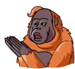 Animated orangutan sticker showing a surprised and shocked reaction, with hands moving in a pleading or gasping gesture.