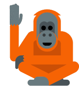 An orange orangutan character, named Orangutunbye, waves its hand in a friendly goodbye gesture.