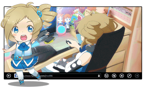 Os-tan Inori transforms the scene from a computer setup to an Internet Explorer logo reveal, showcasing her playful spirit.