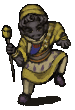 Osaa from Fear & Hunger performs a pixelated dance, holding a cane and a mysterious ball.
