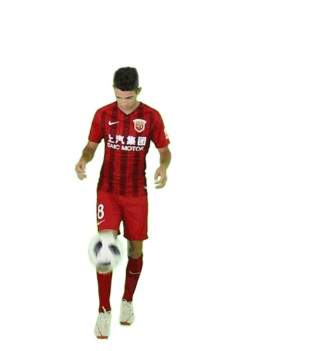 Oscar Emboaba, a footballer in a red jersey, skillfully juggles a soccer ball with his feet and chest, showcasing impressive ball control.